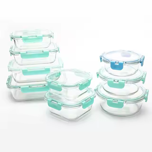 1.All-natural glass storage containers with leak-proof BPA-free plastic snap lids