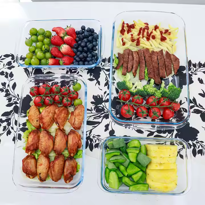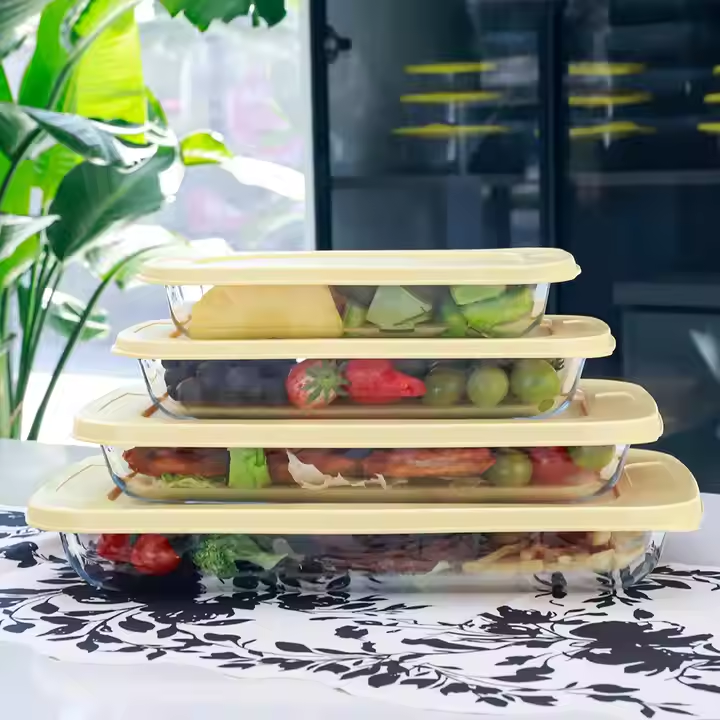 1.Made of shatter-resistant and tempered high borosilicate glass 2.Safe to use in freezer, dishwasher, microwave and oven (do not put lids in oven or microwave) 3.Containers nest/stack to save space 4.Won't absorb odors and stains