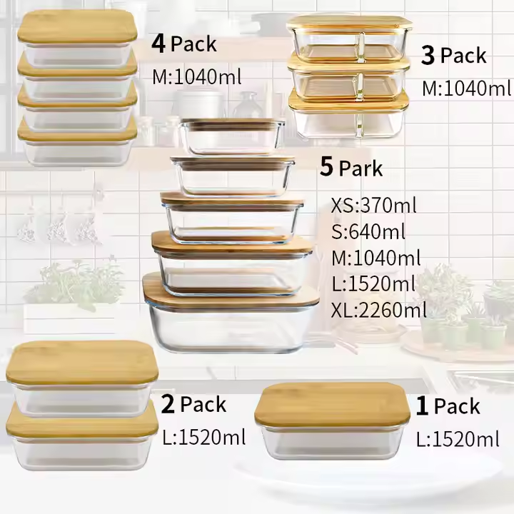 1.All-natural glass storage containers with leak-proof BPA-free plastic snap lids